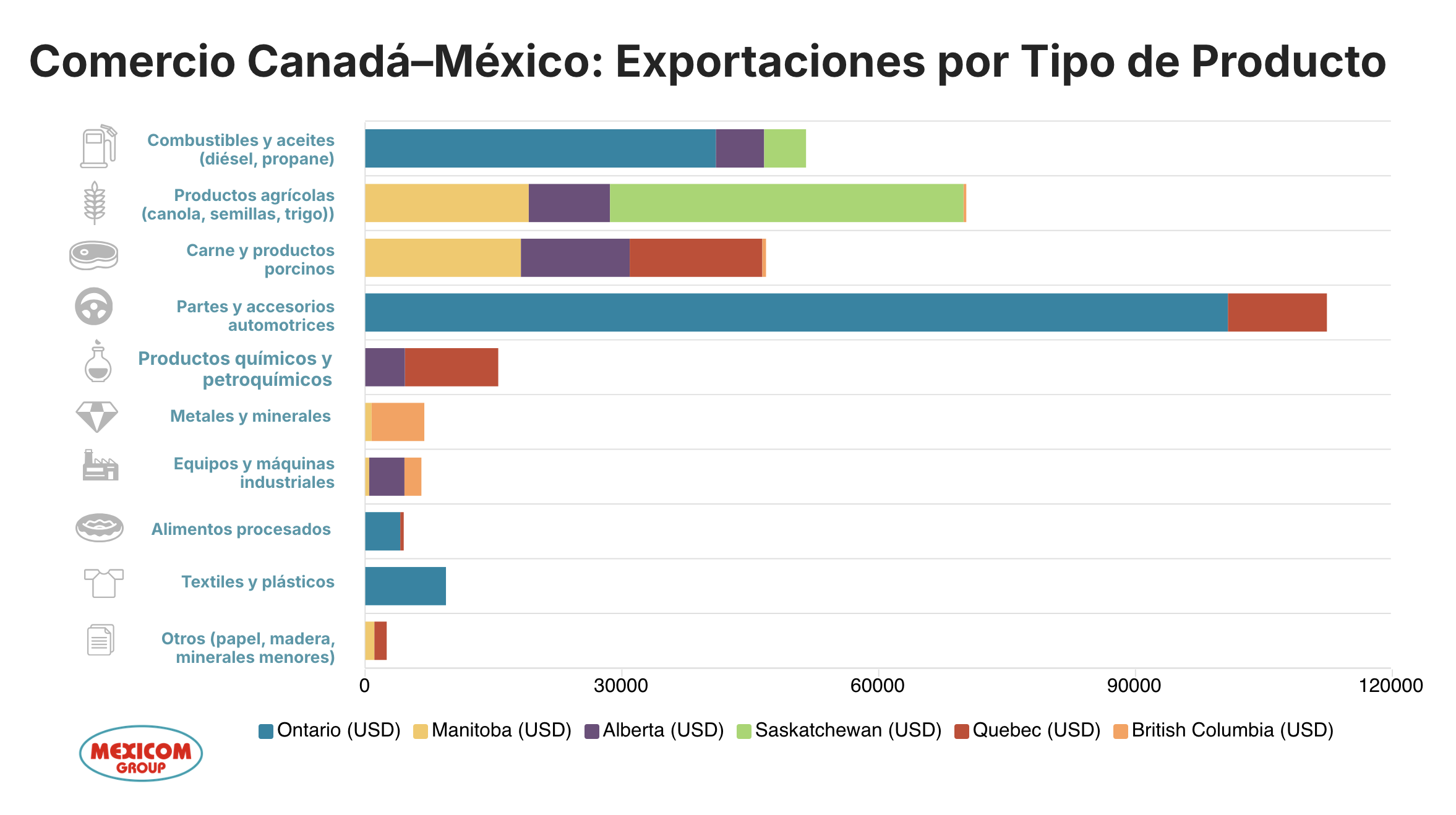 Comercio Canadá–México: Exportaciones por Tipo de Producto
